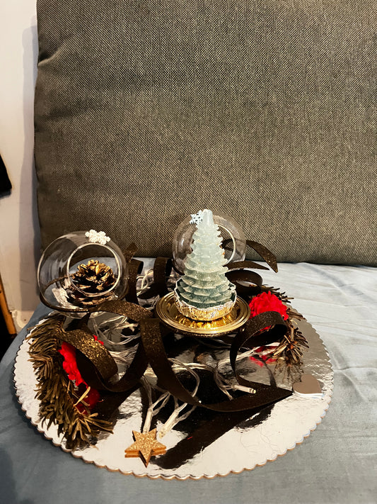 Centre de table avec bougie sapin pour les fêtes de fin d année
