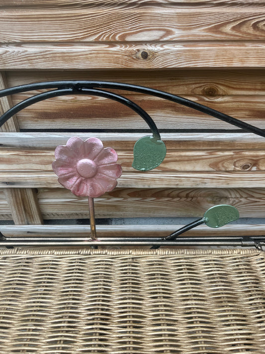 Guéridon en fer forgé et osier.