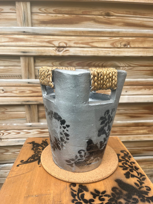 Vase avec décorations florales en étain