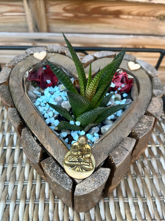 Pot cœur avec fleur cactus