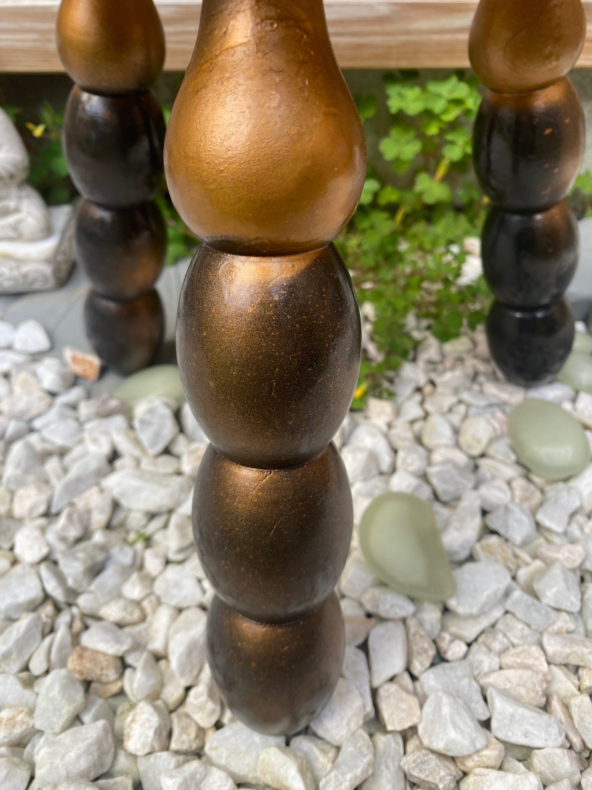 Très beau petit banc couleur noir et bronze, et un dégradé de deux couleurs pour les pieds