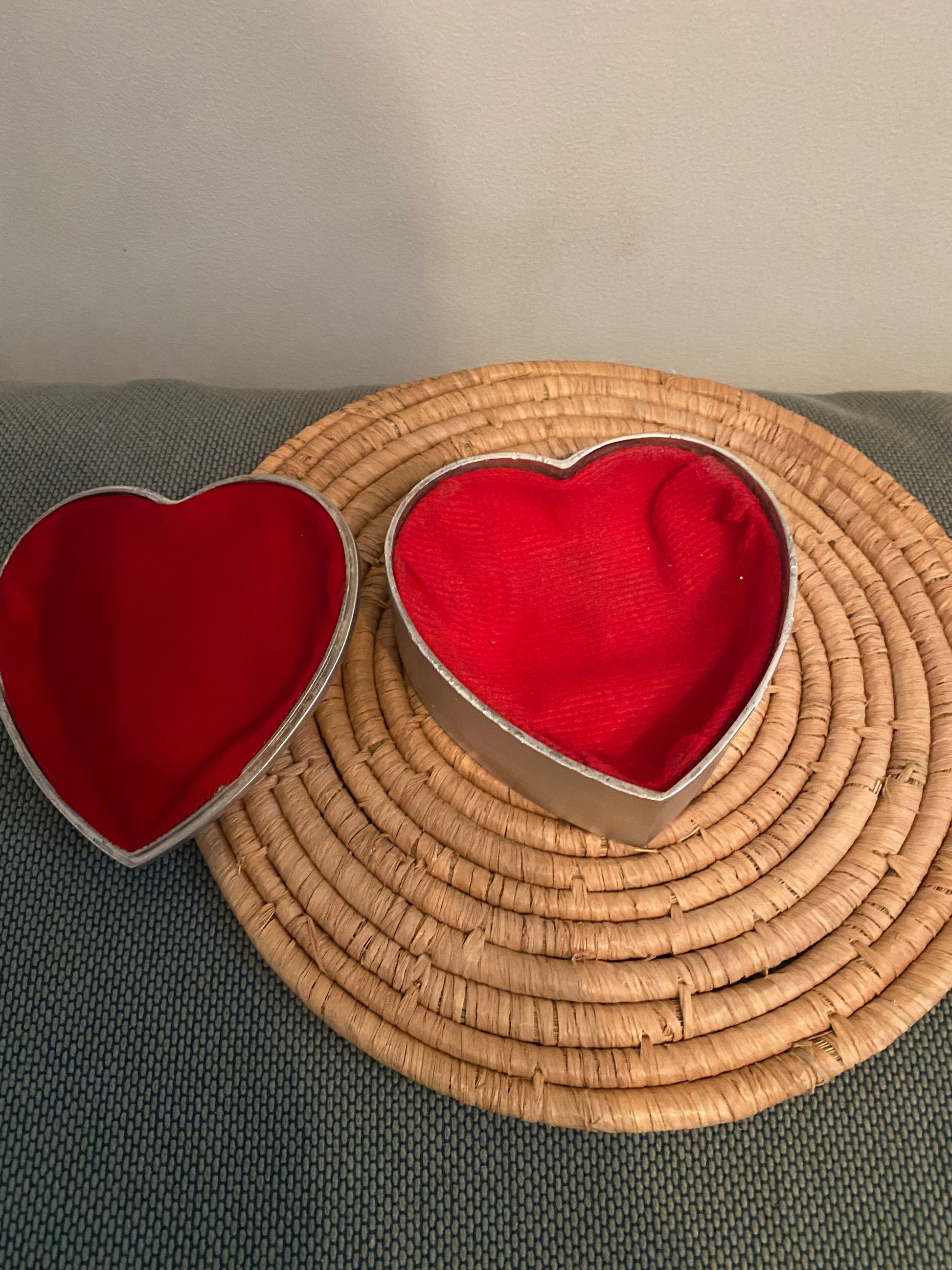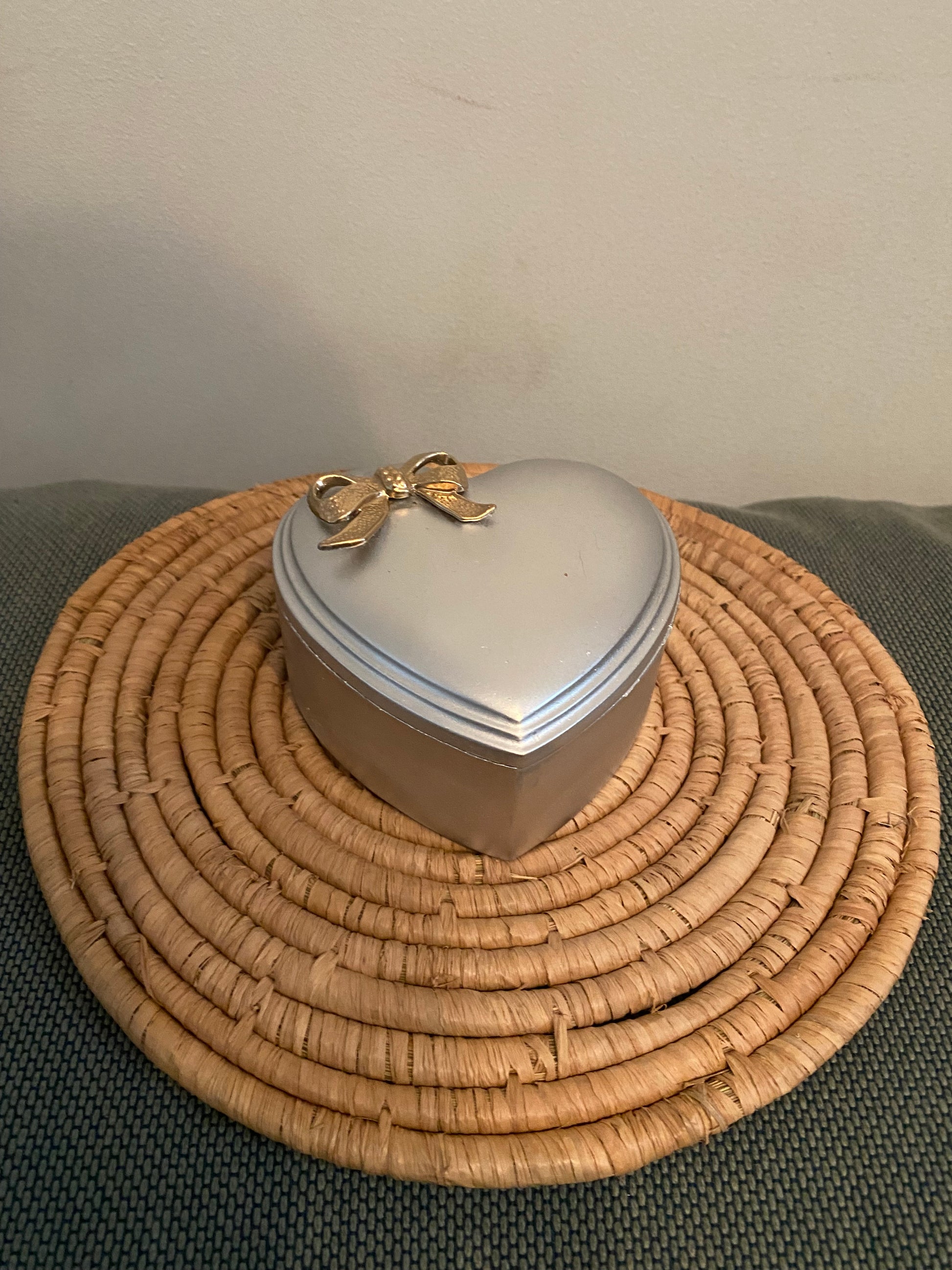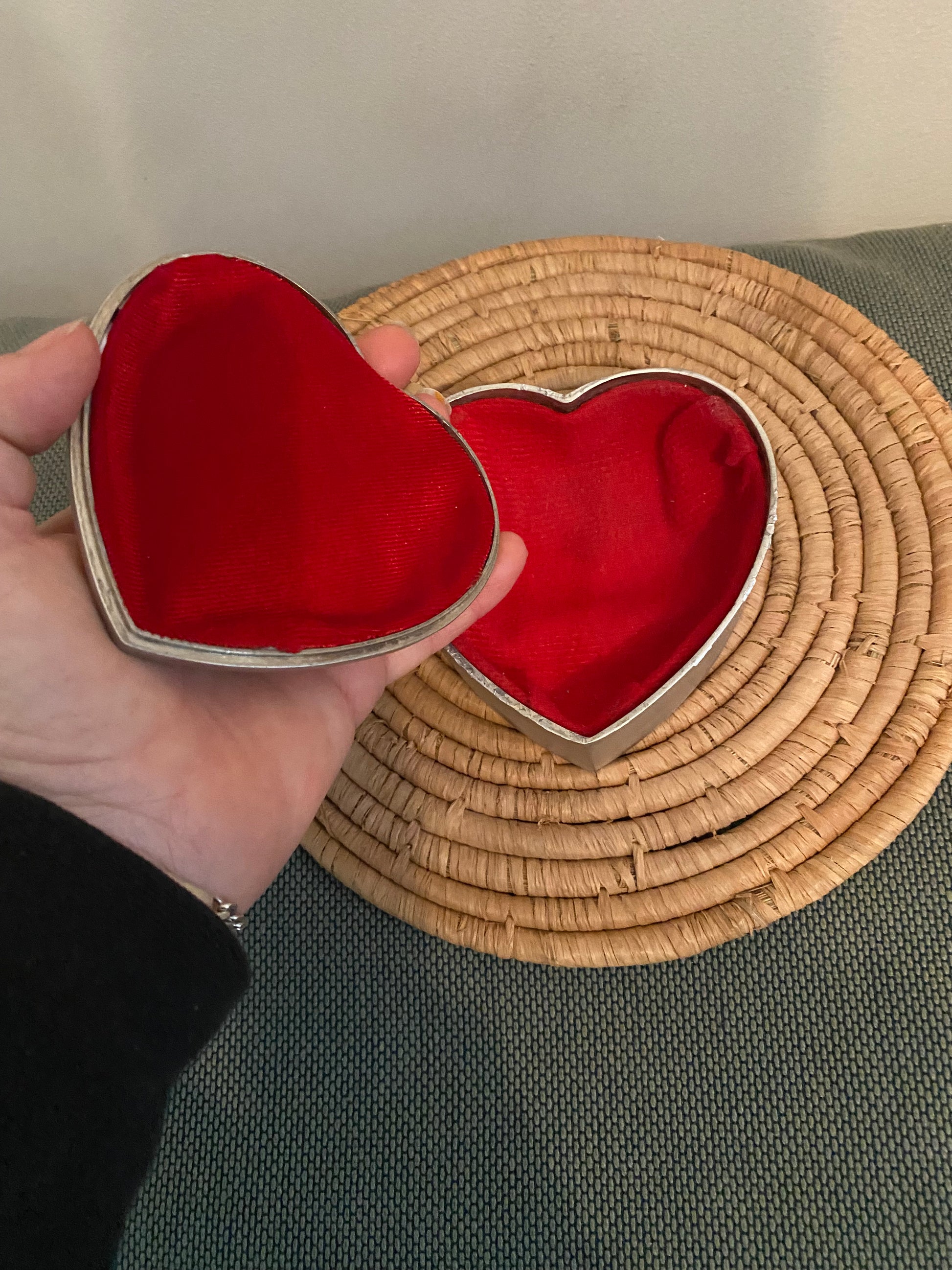 Très belle petite boîte à bijoux ancienne, en forme de coeur.