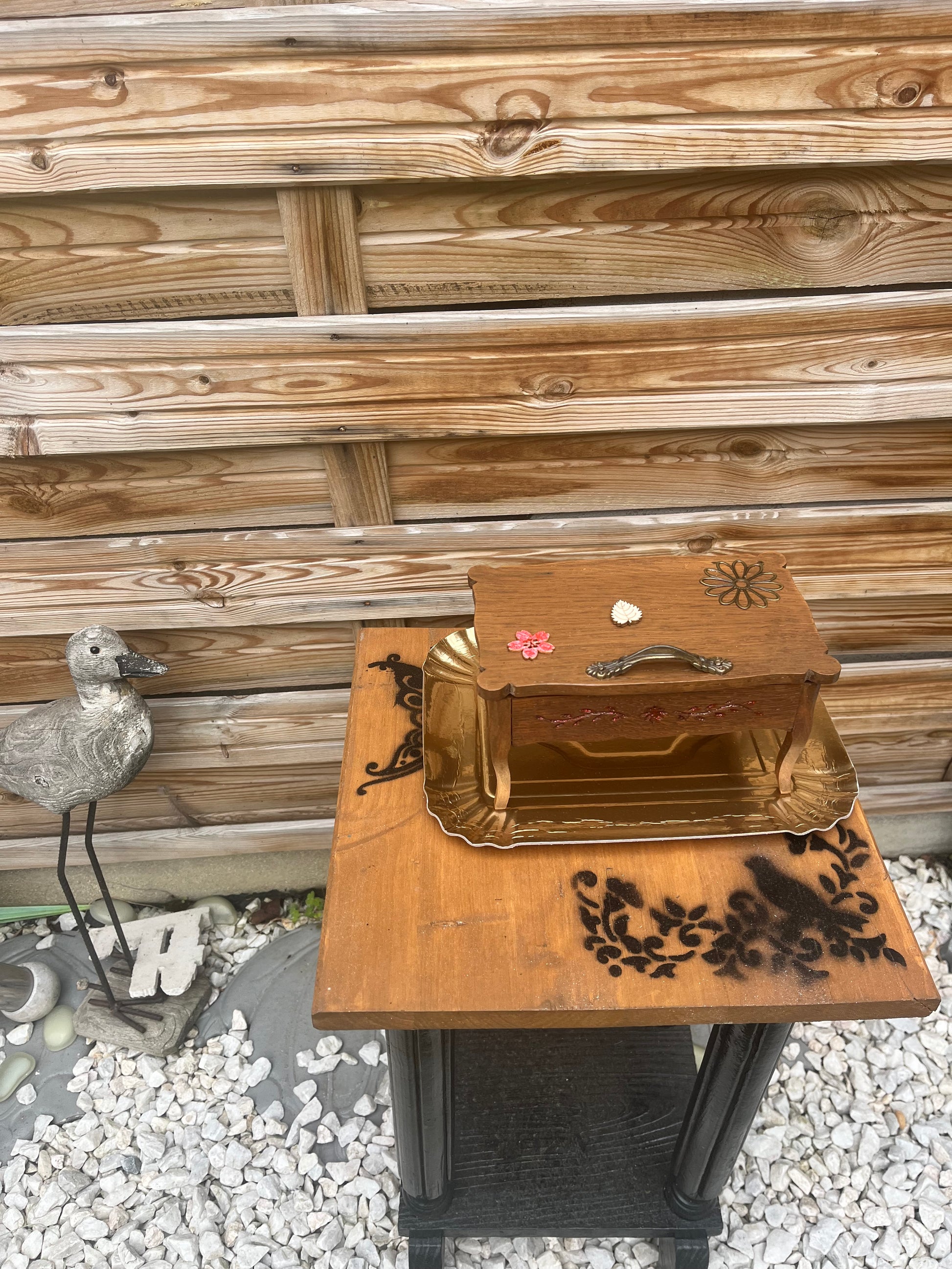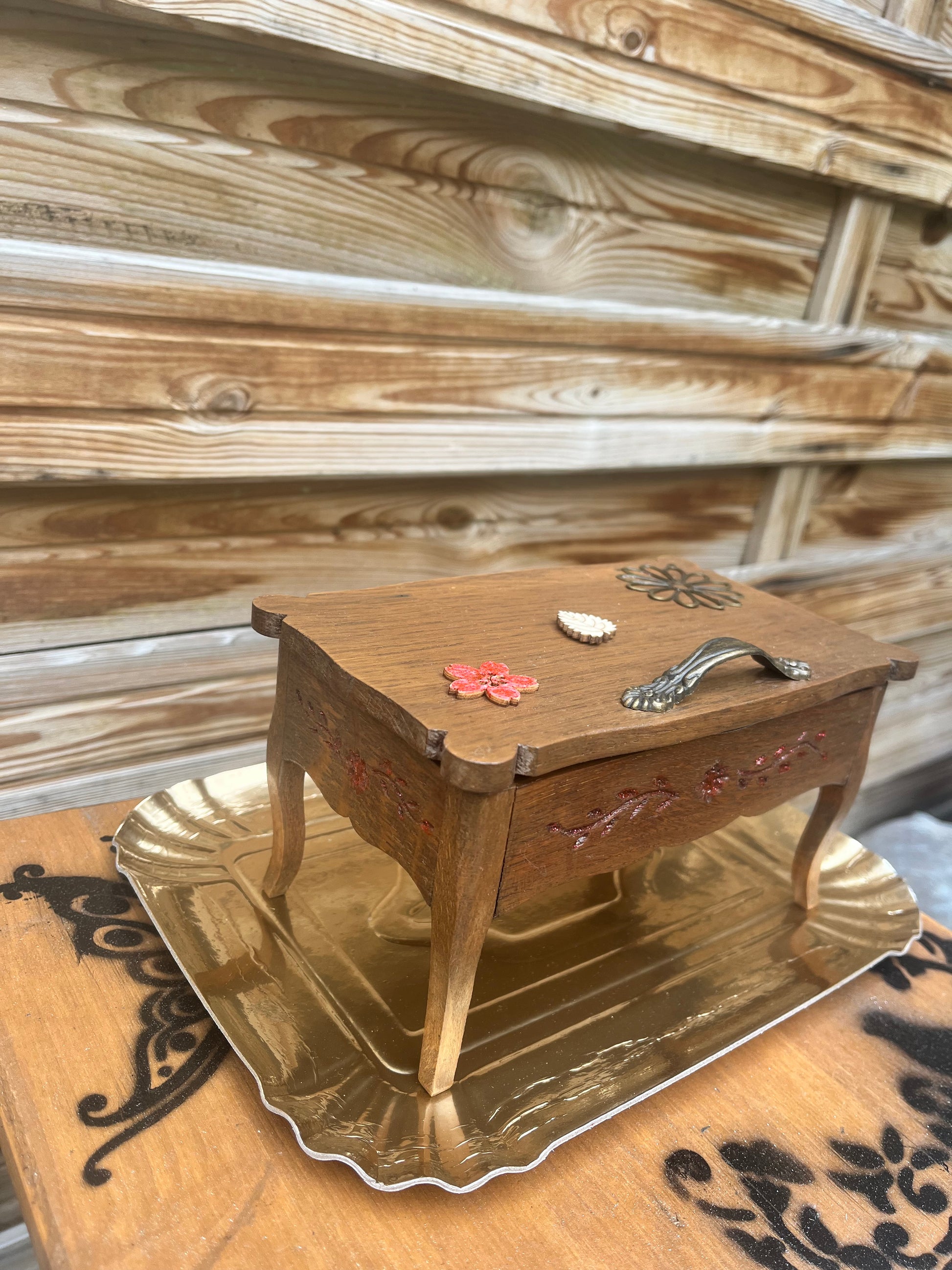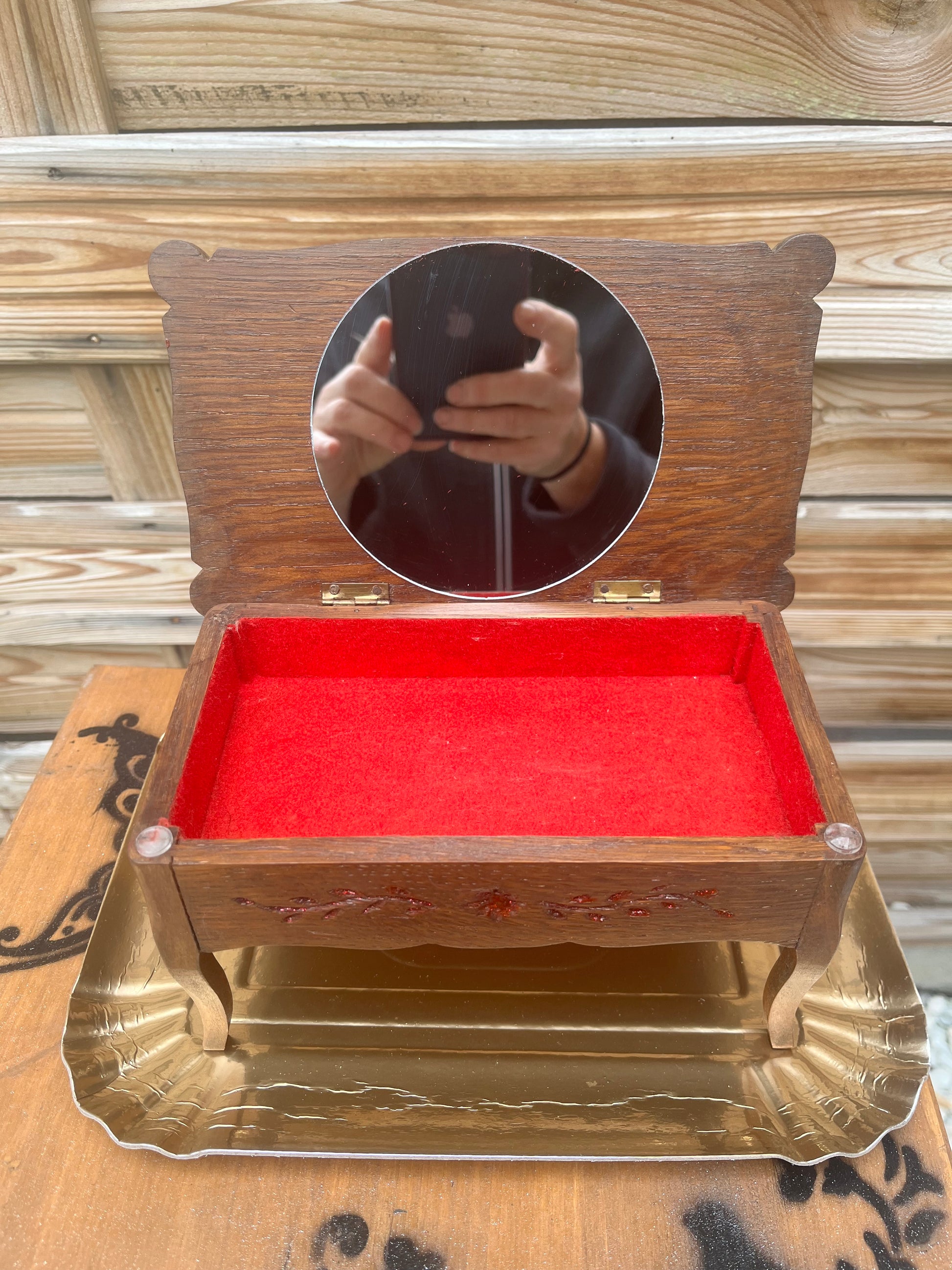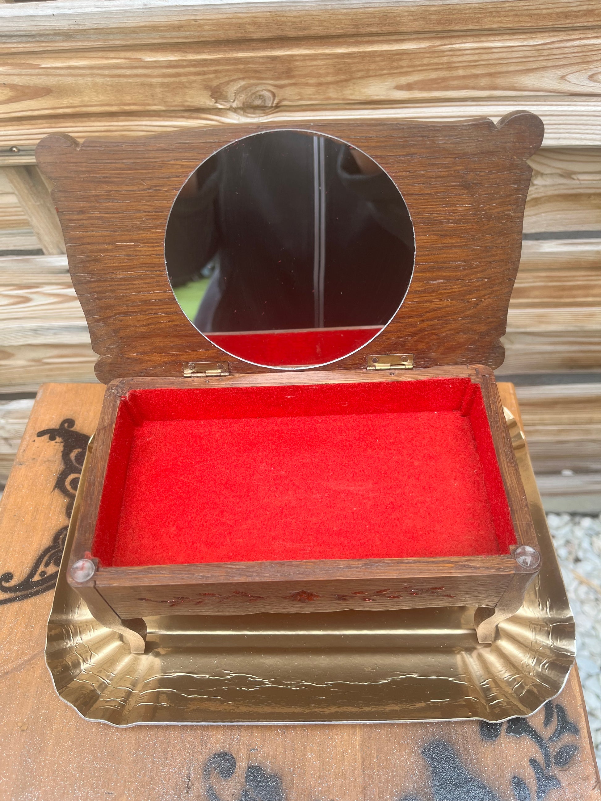 Très beau coffre à bijoux avec petit miroir à l'intérieur pour s'admirer en mettant nos bijoux.