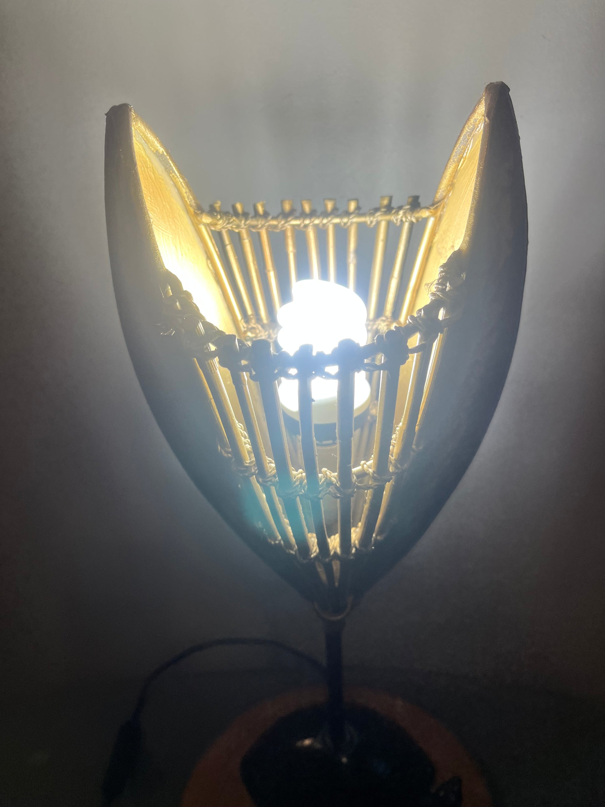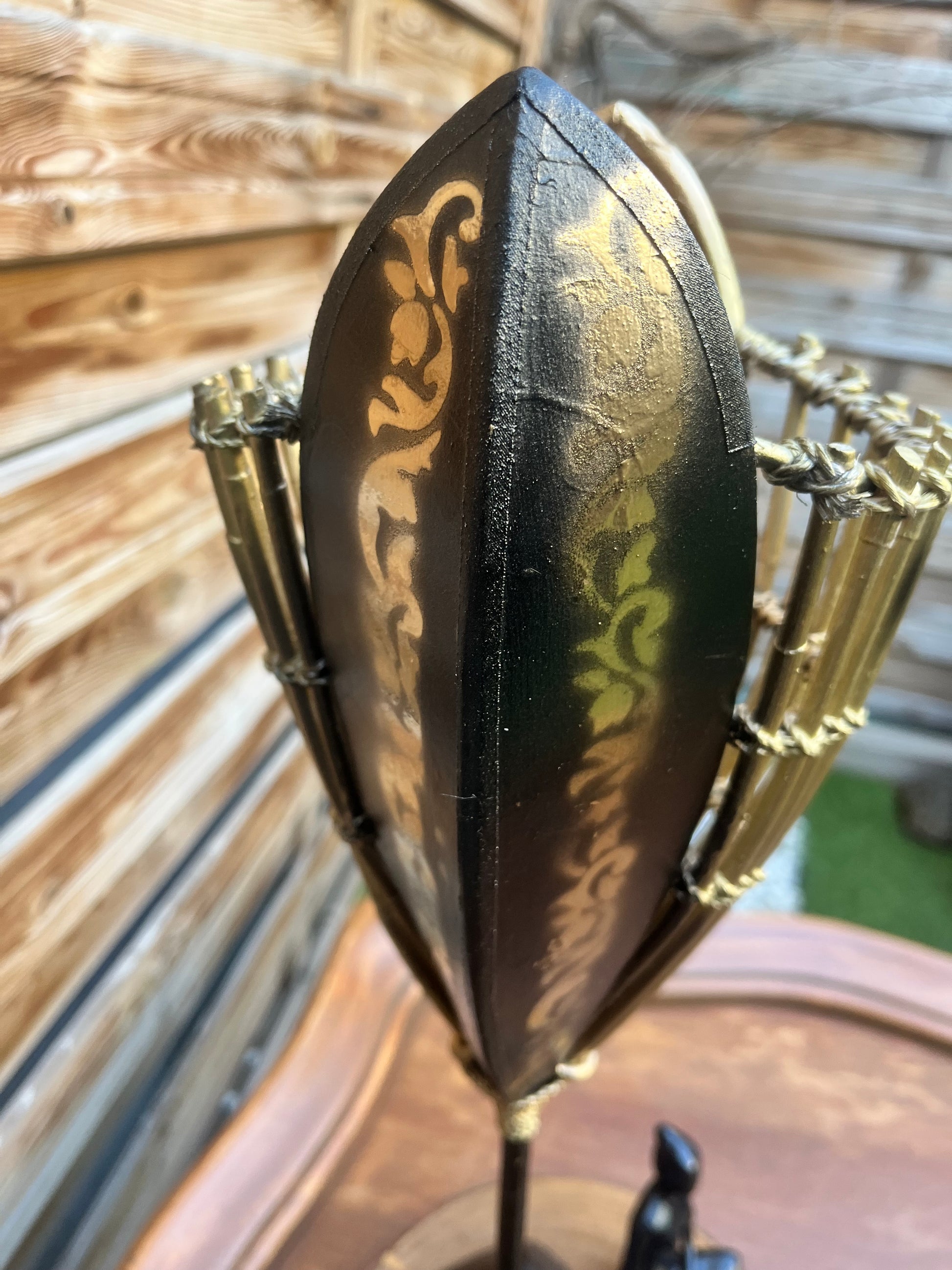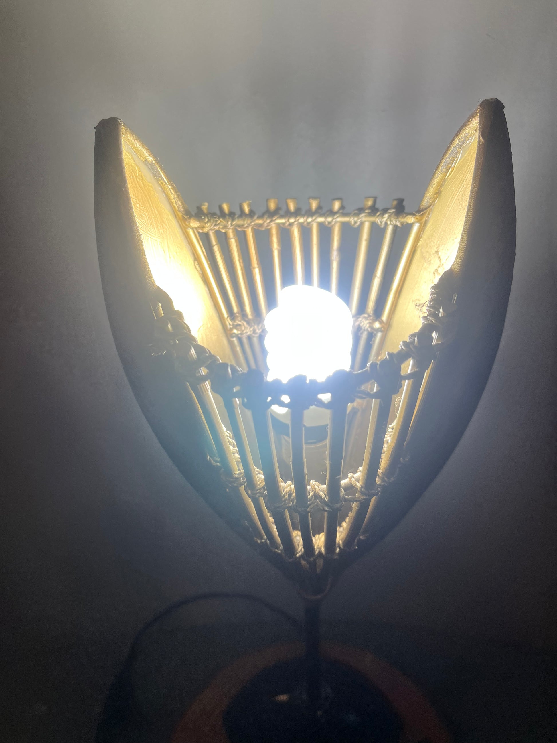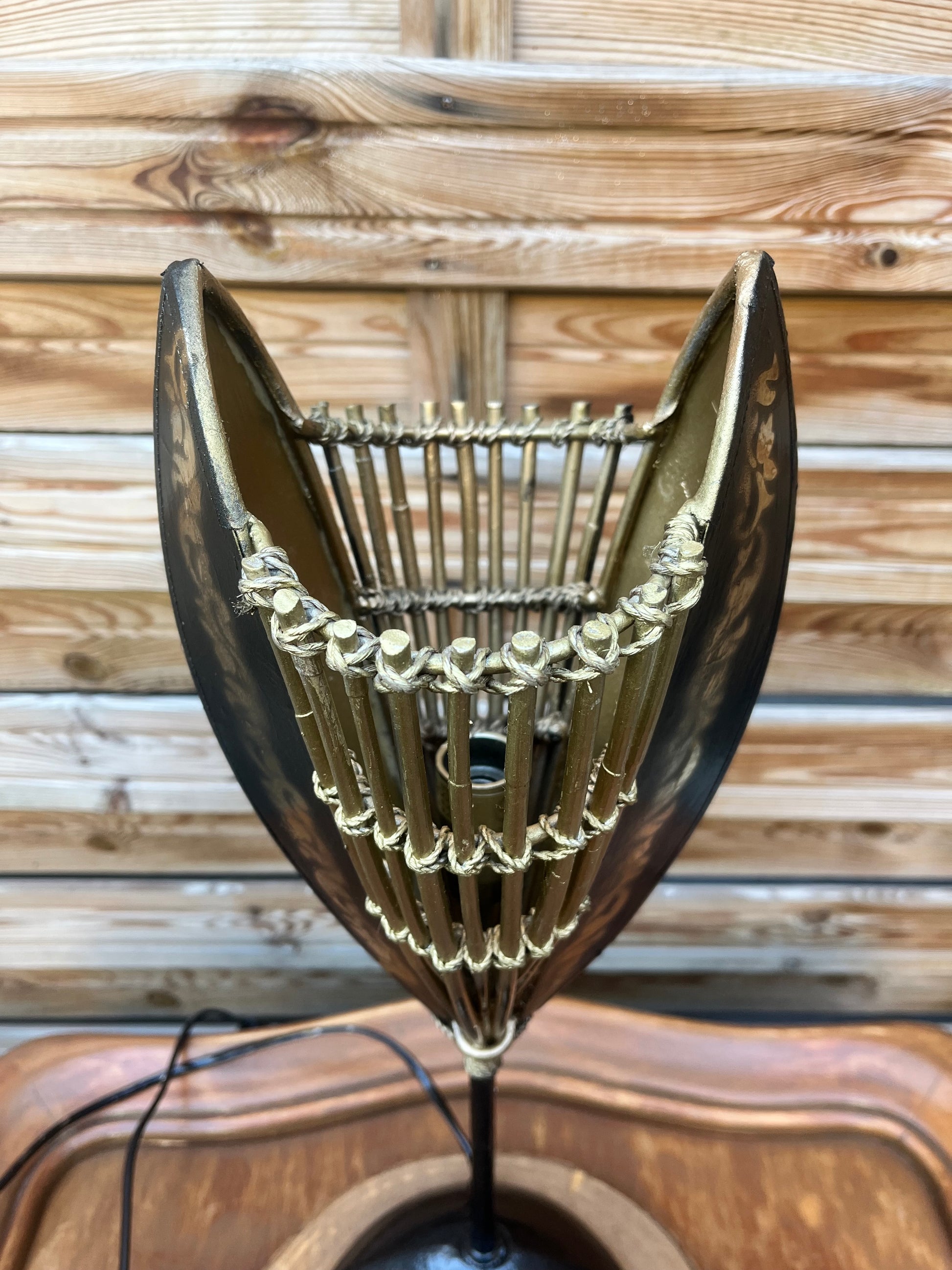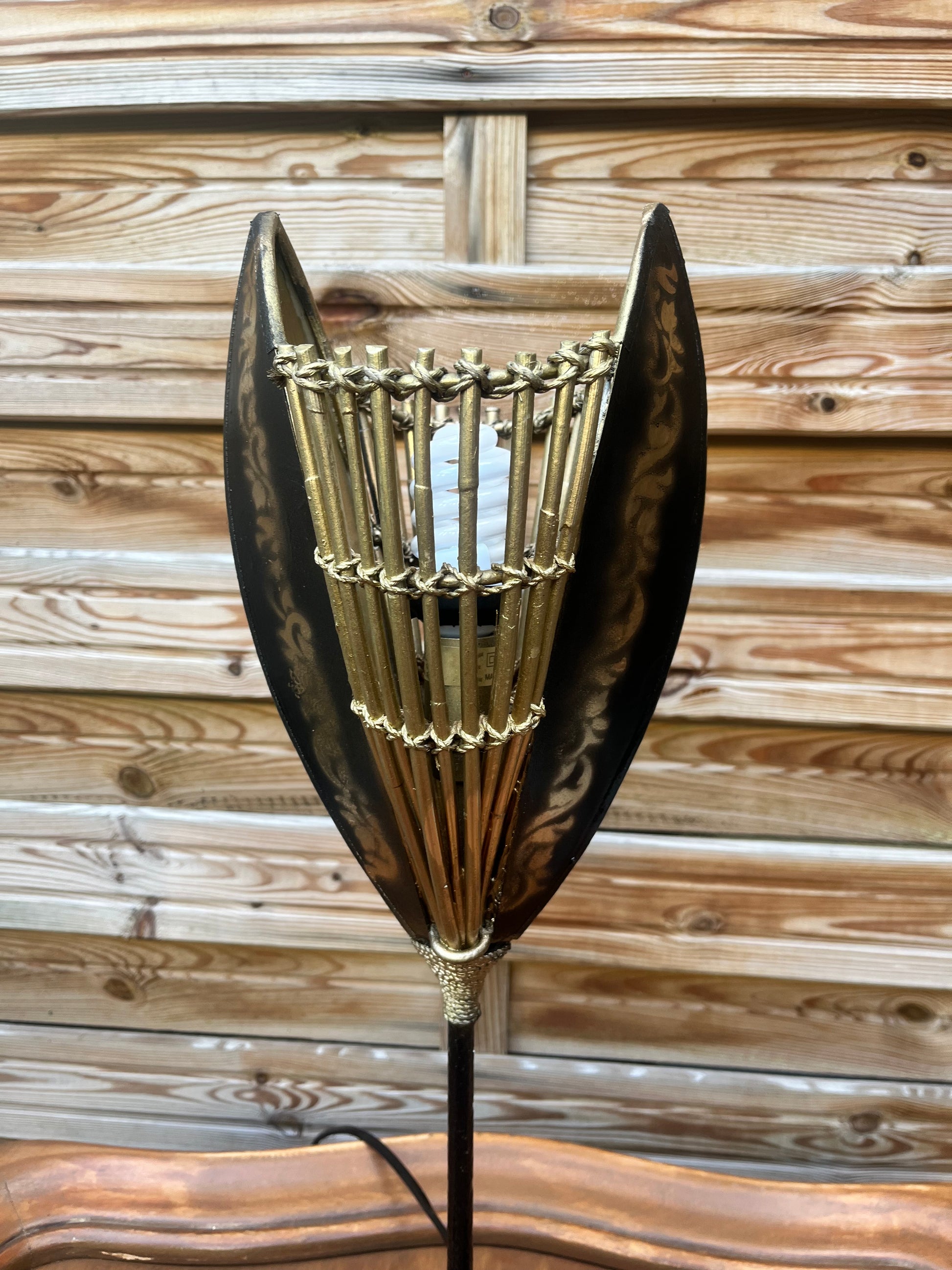 Belle lampe noire et or, avec statuette de femme zen et porte encens.