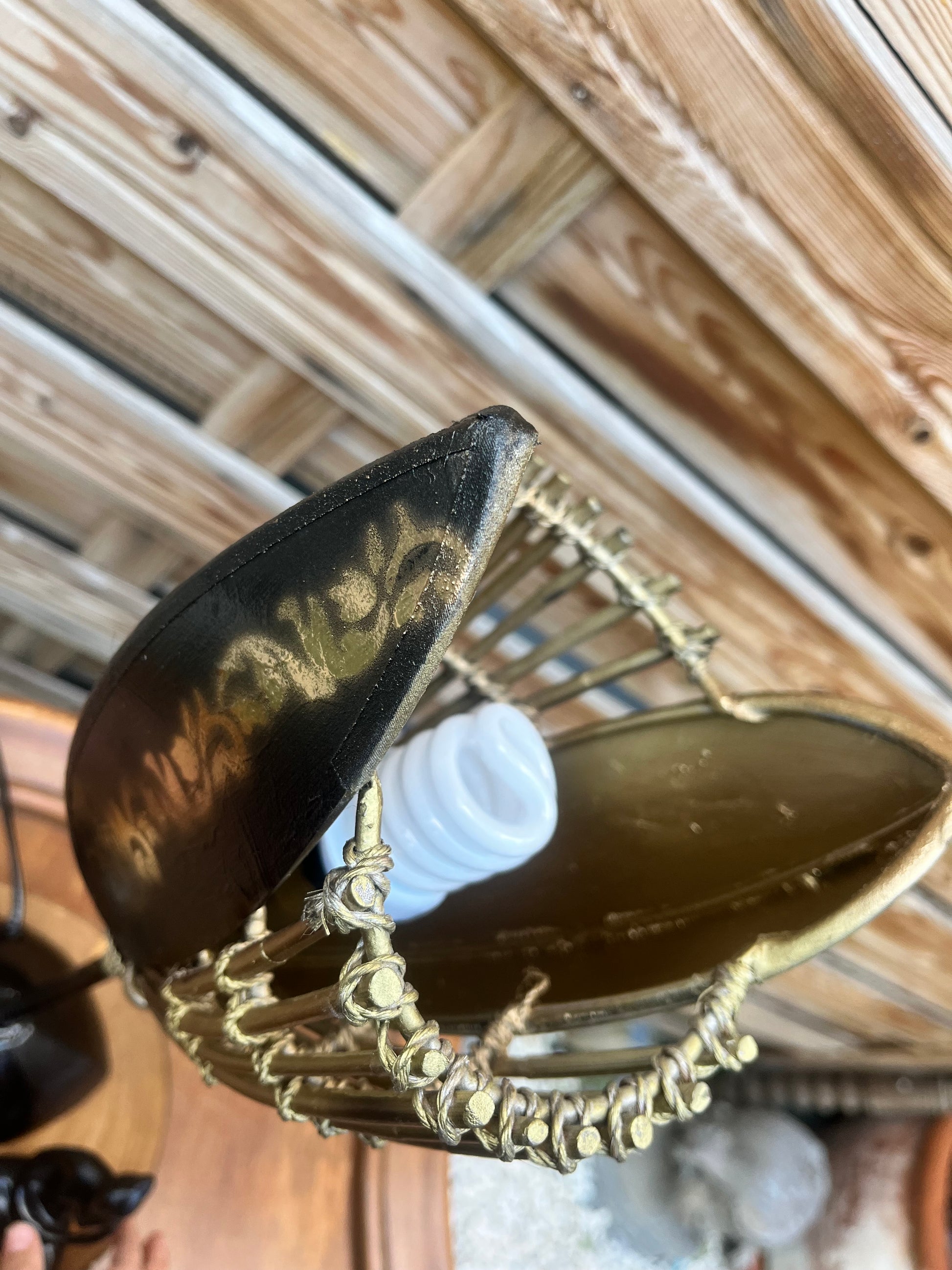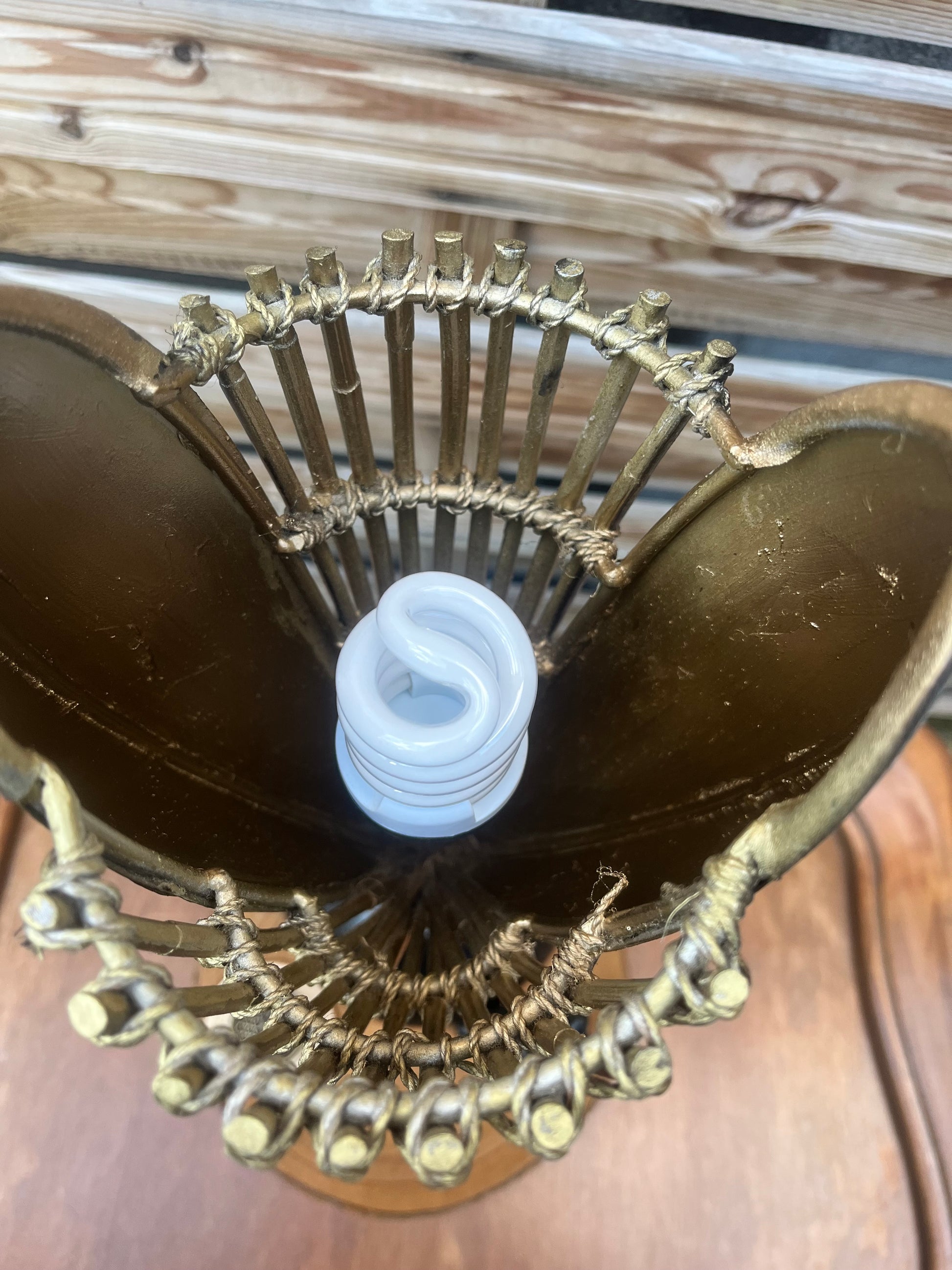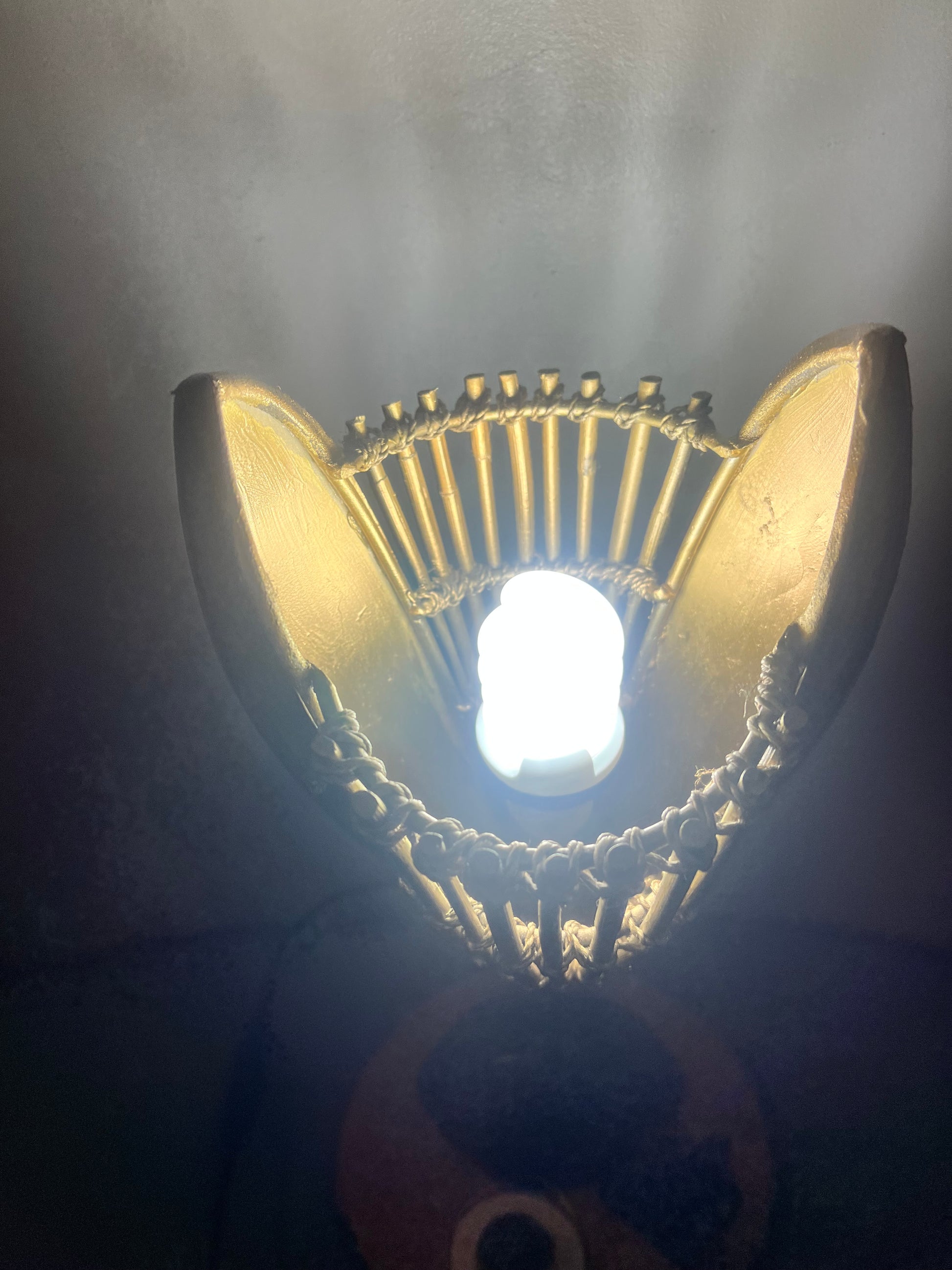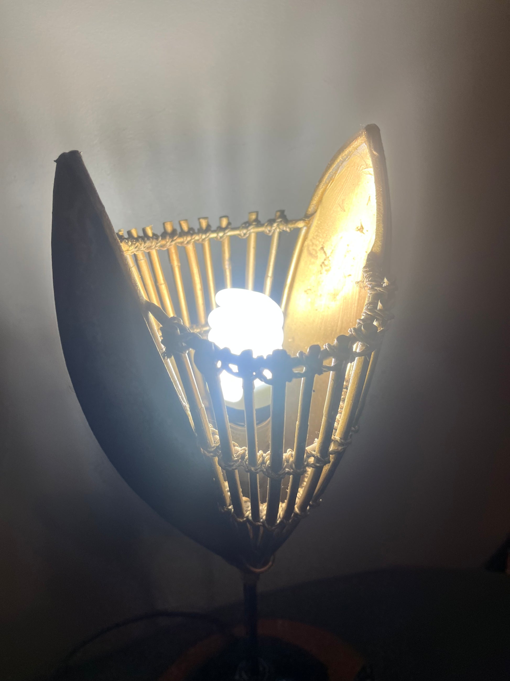 Belle lampe noire et or, avec statuette de femme zen et porte encens.