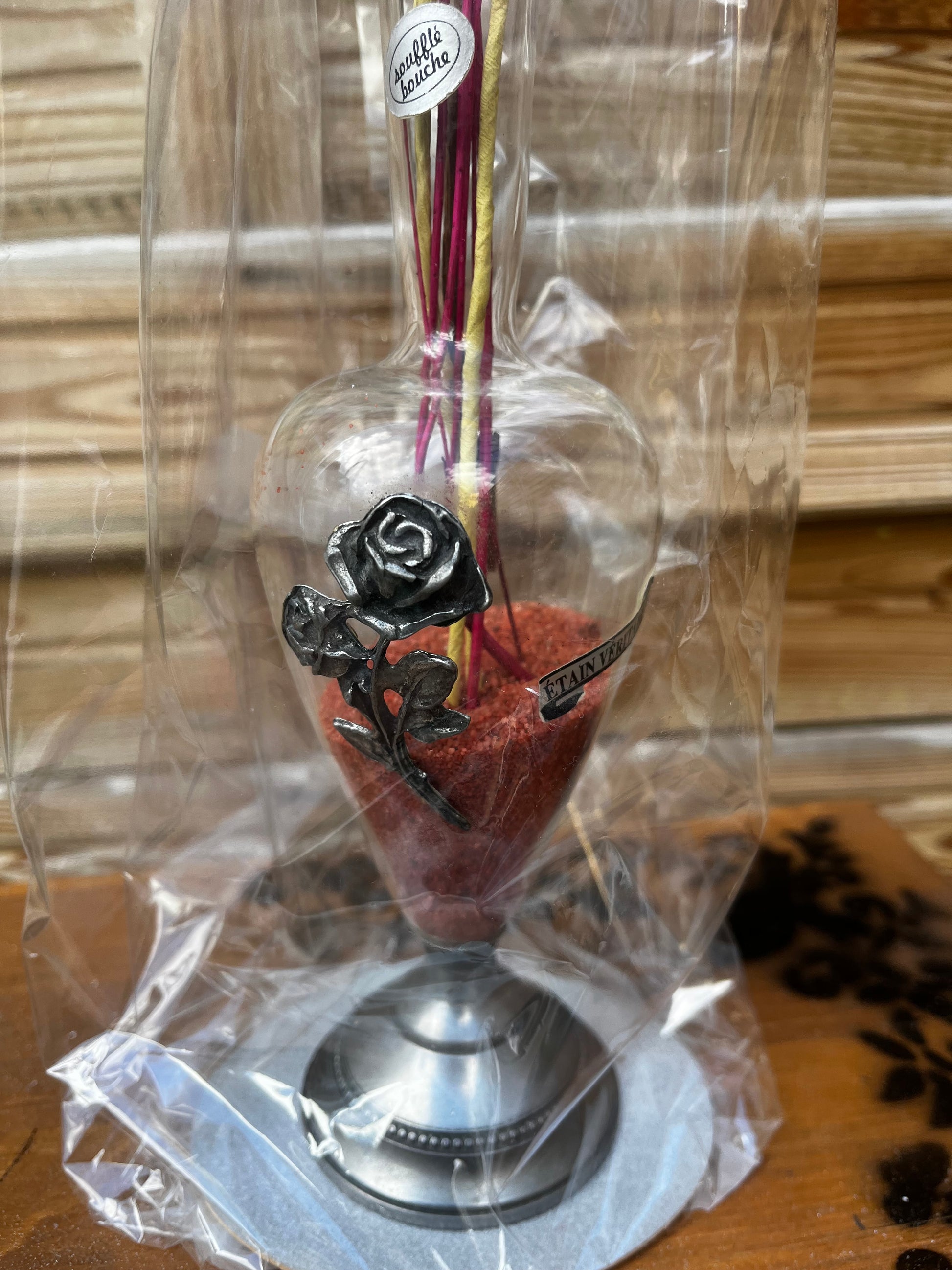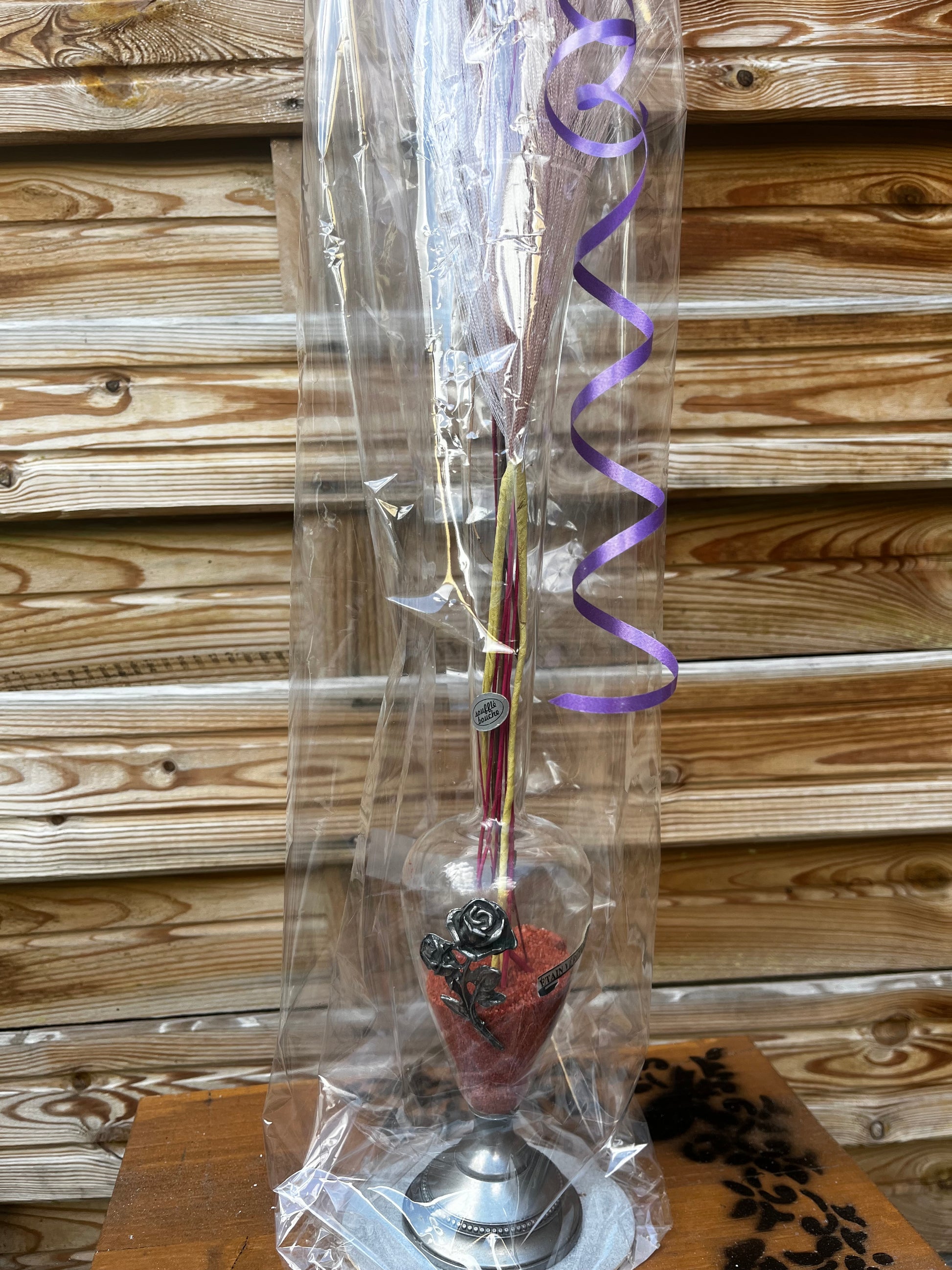 Vase en verre et étain
