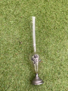 Beau vase en verre à décors en étain. Très élégant.