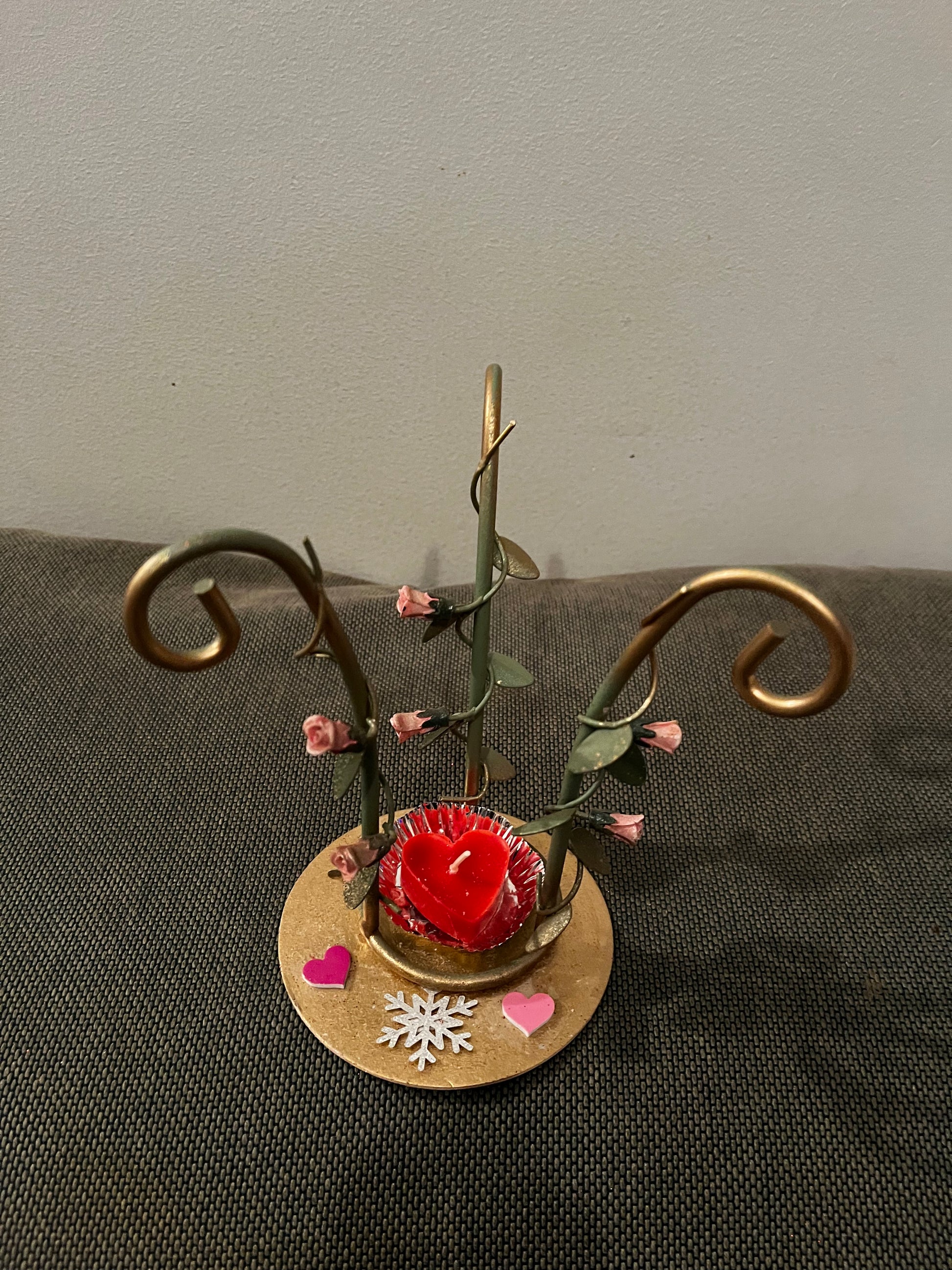 Très joli porte bijoux. Avec une bougie cœur rouge.