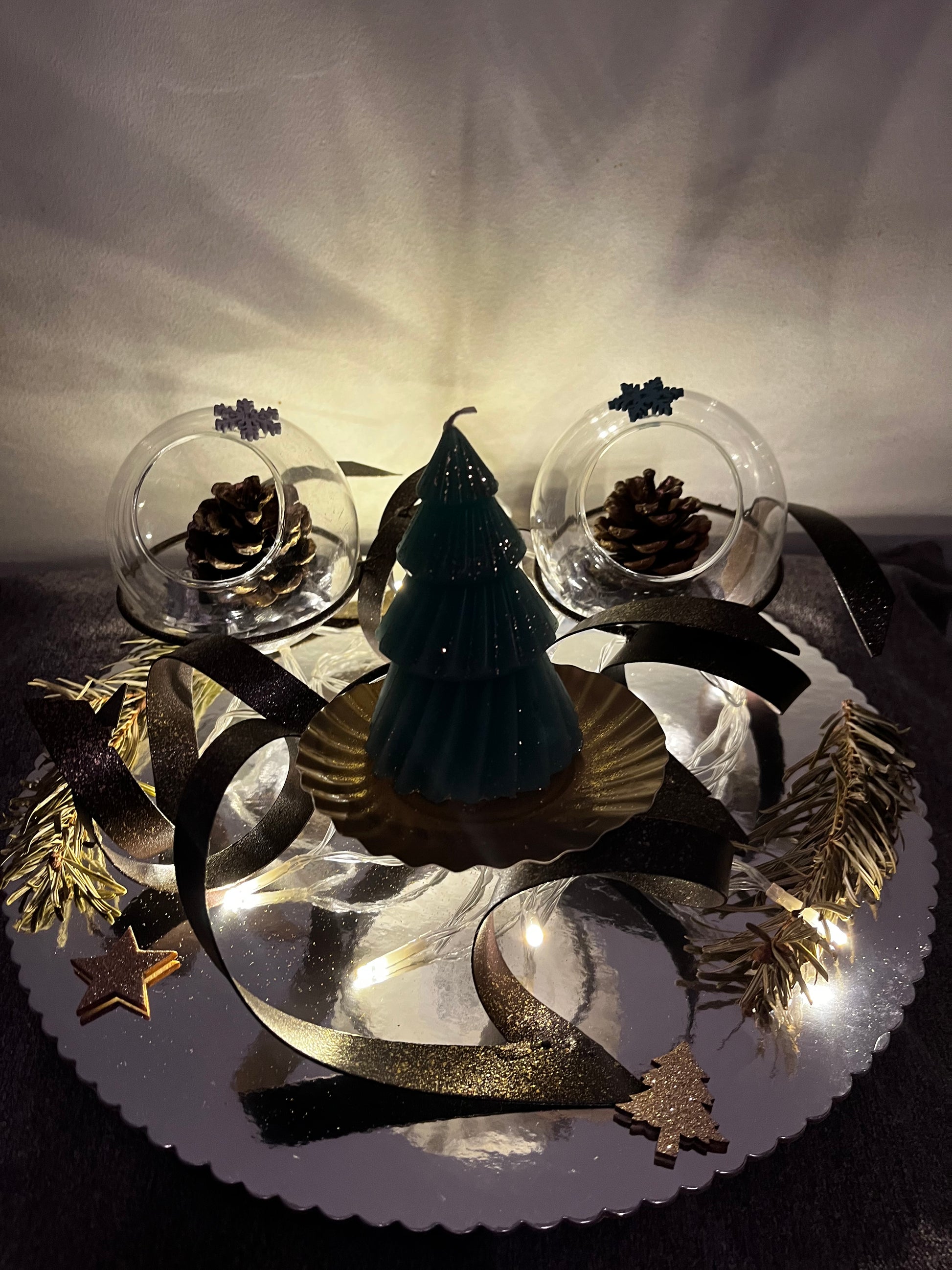 Centre de table avec bougie sapin pour les fêtes de fin d année