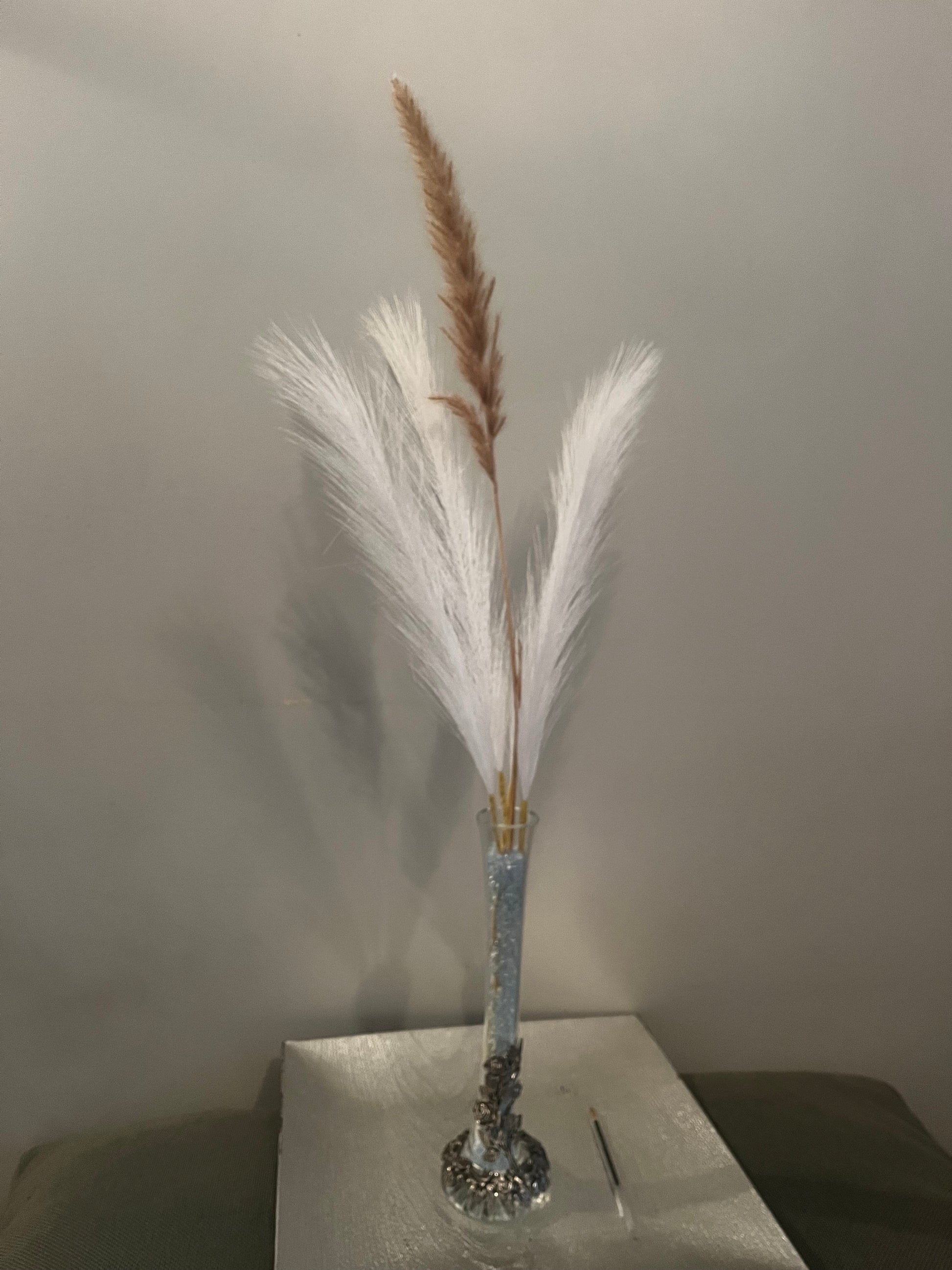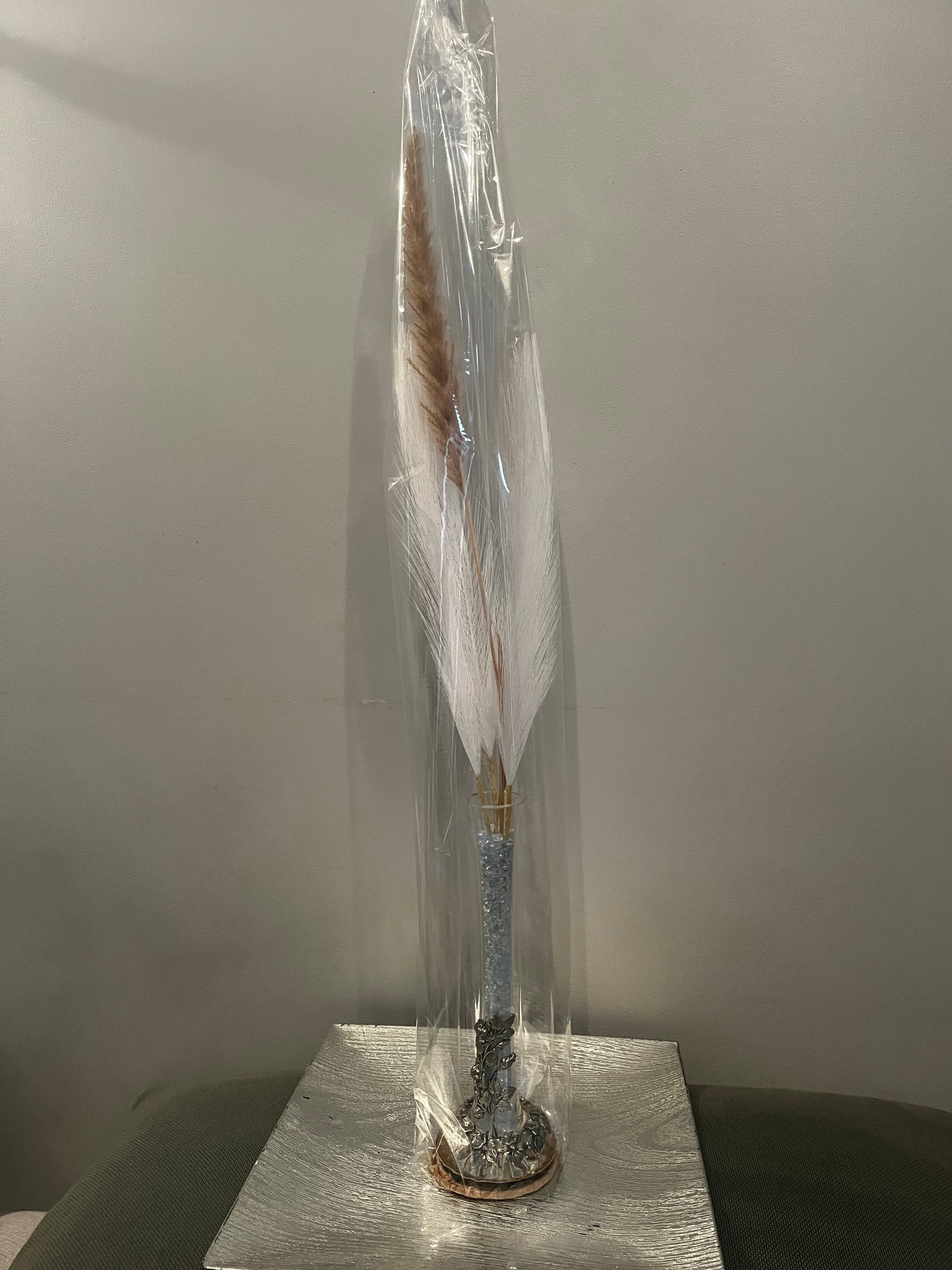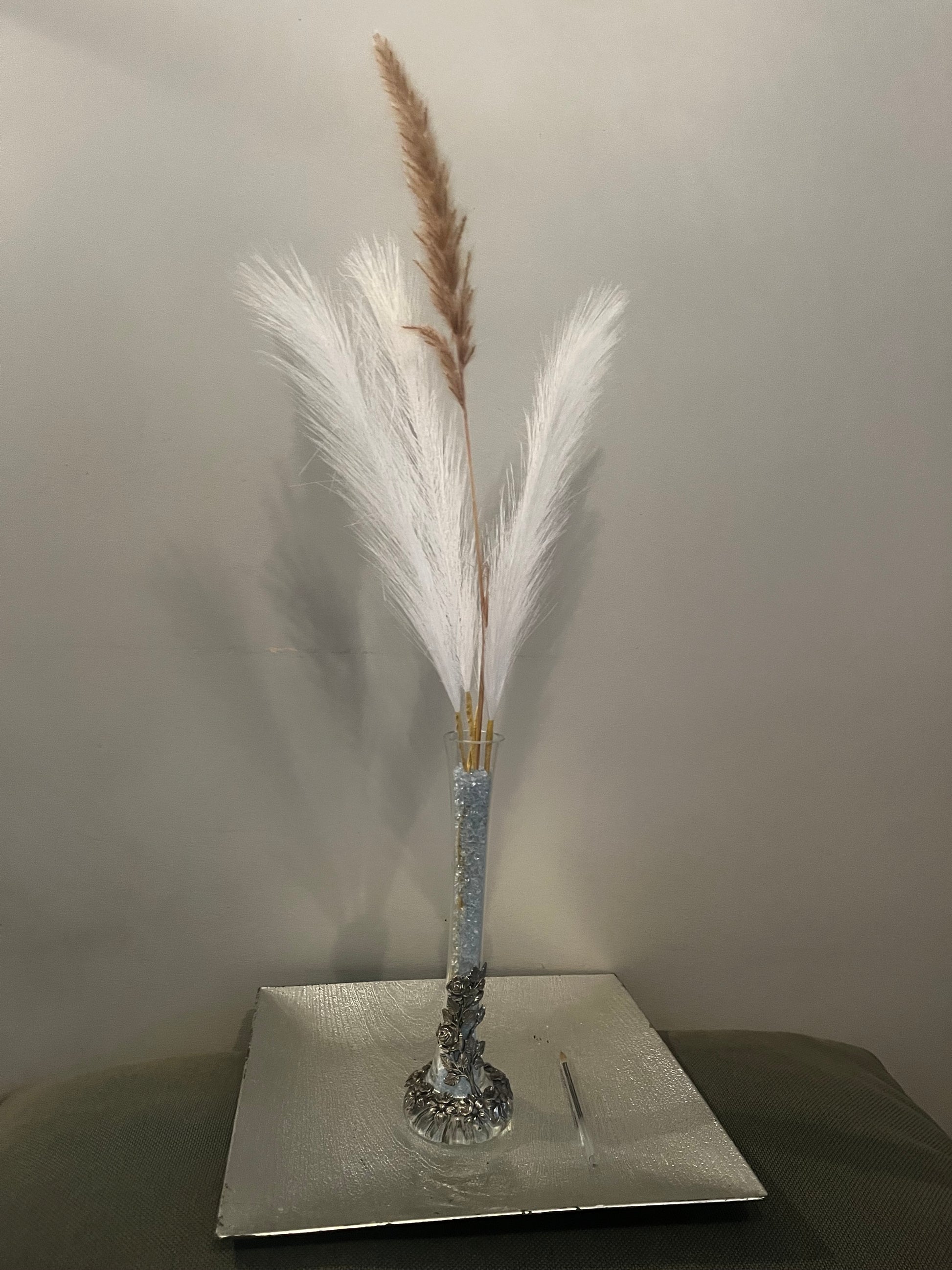 Vase avec décorations florales en étain