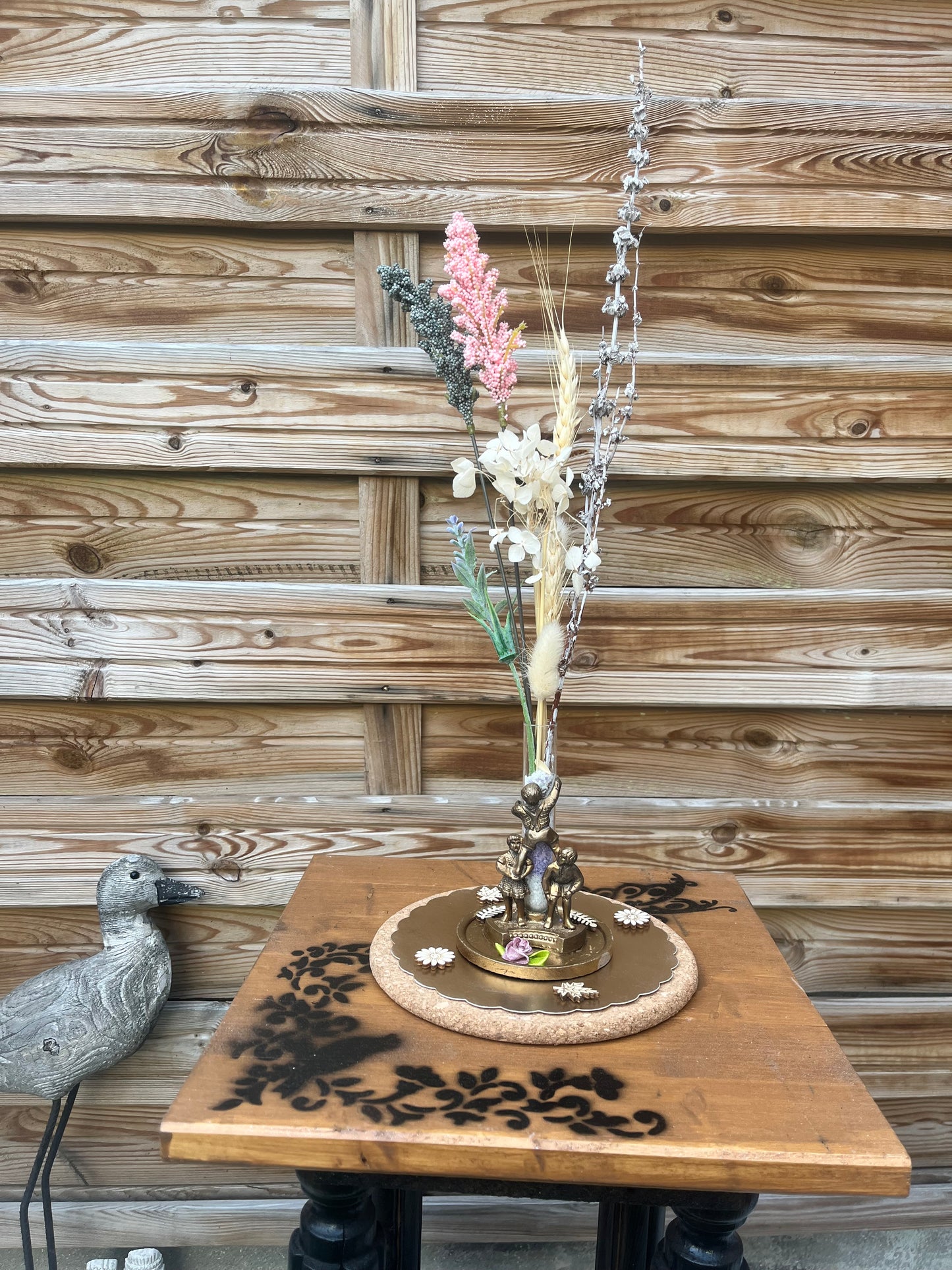Dimensions : Hauteur totale avec fleurs 45cm. Largeur 8cm. Plateau de 14cm. Poids 200gr